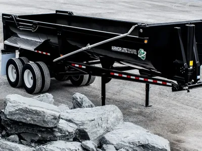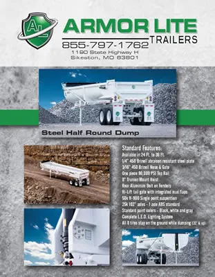 With a lower side height for easy loading and a lower center of gravity for additional anti-roll stability, the Armor Lite Steel Half Round is the trailer of choice when it comes to hauling oversized rock or demolition. The ability to keep all eight tires on the ground while dumping makes this half round dump one of the safest on the market today.